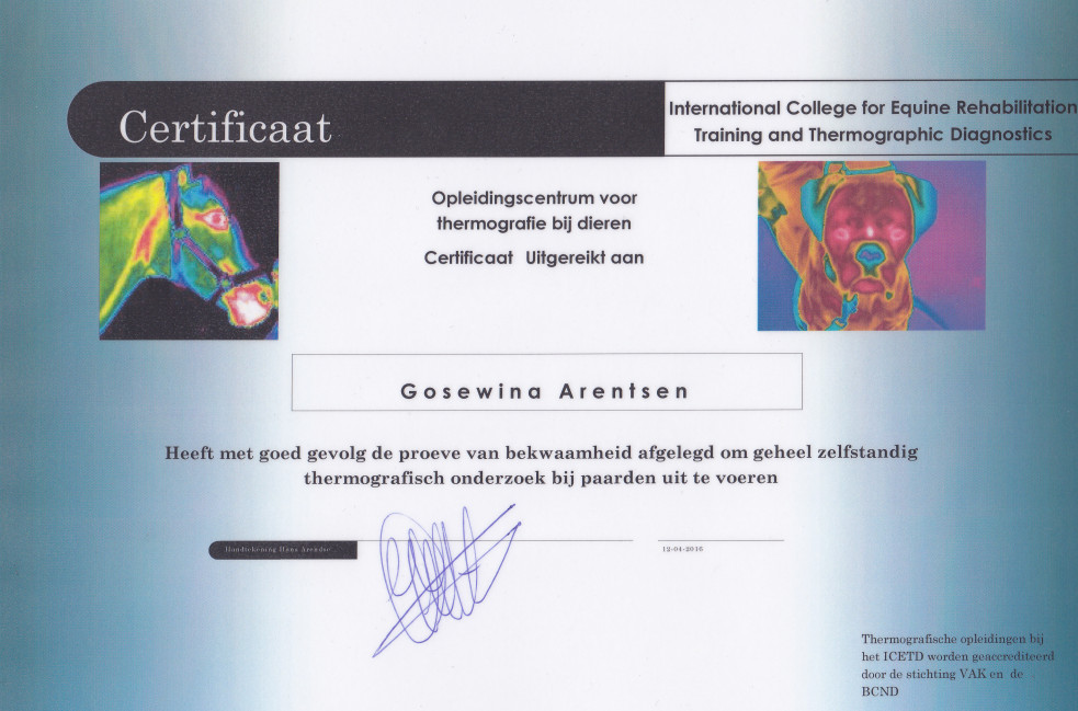 Heeft je paard vage (kreupelheids) klachten, heb je de dierenarts geconsulteerd, maar kan de dierenarts geen juiste diagnose stellen, komt een blessure regelmatig terug, wil je een paard aankopen, wil je na een revalidatieperiode weten of je weer je oude trainingsniveau kunt oppakken, wil je weten of je paard een correcte hoefbalans heeft, ben je benieuwd naar de voortgang van een genezingsproces of wil je je paard preventief laten onderzoeken om je paard blessurevrij te houden, dan biedt thermografie een uitstekende uitkomst.